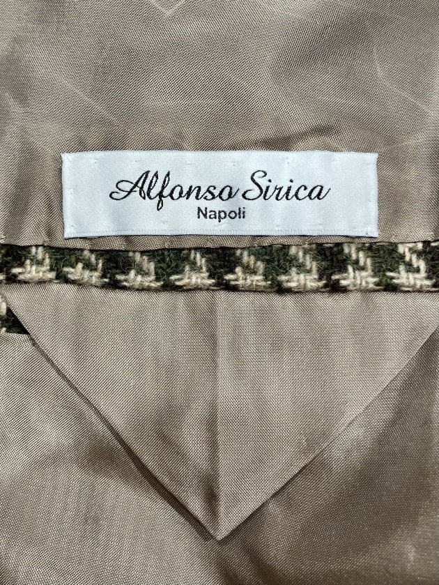メインで着用しているスーツは、イタリアはナポリにあって、その工程のほとんどを手作業で行う高い技術力が魅力の〈(ALFONSO SIRICAアルフォンソ シリカ)〉より。
