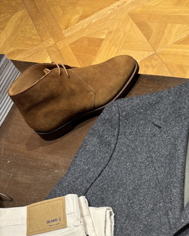 ホームスパン→コーデュロイと来たら、足元は〈Lloyd Footwear〉のチャッカブーツが良いですね。