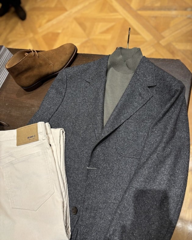 アンライニング(裏地なし)も相まって、非常に軽い着心地です。いかにもなゴリゴリのホームスパンとはまた別物ですね。