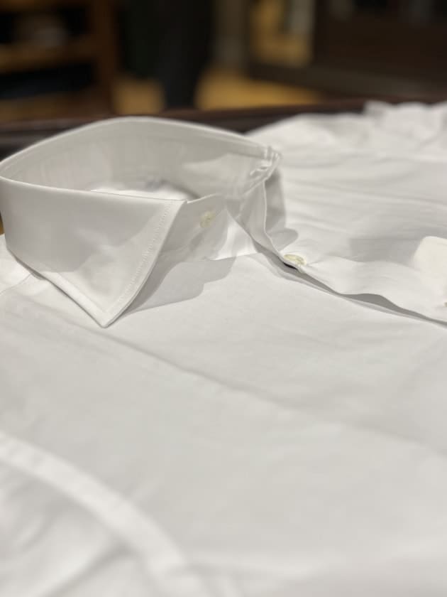 襟先の落ち方がエレガントでして、真面目なシャツの中にほんの少し洒落っ気を感じさせるニュアンスが推しポイントです。