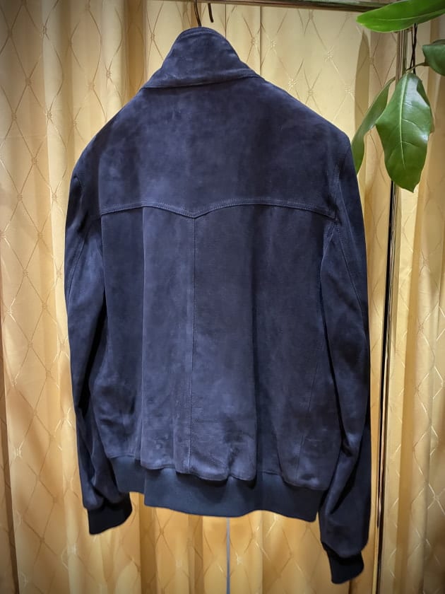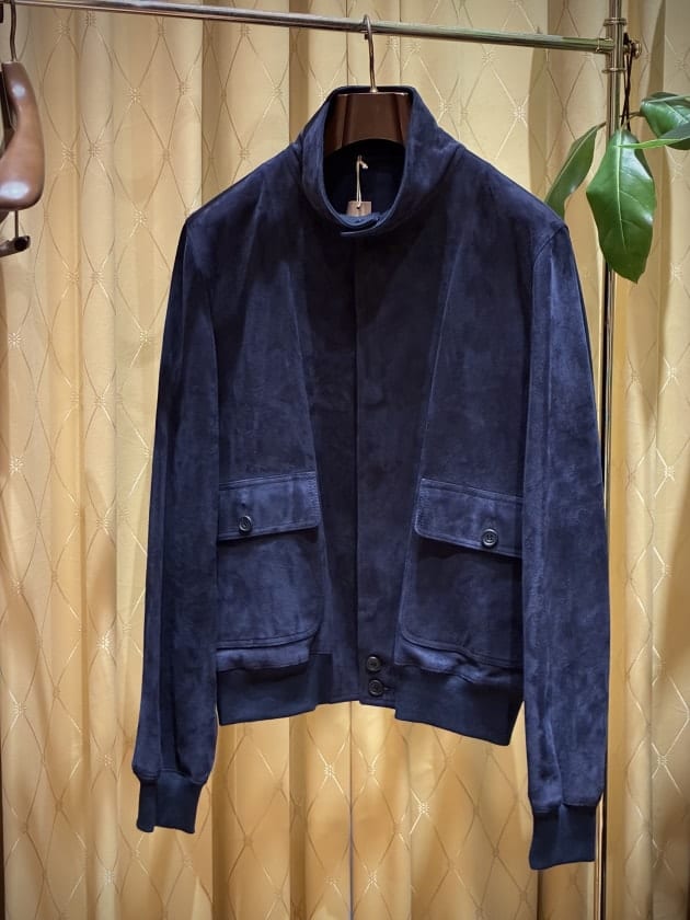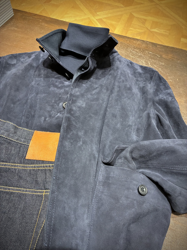 エレガントなスエードジャケットにスーパーカシミアとシーアイランドコットンのデニム。