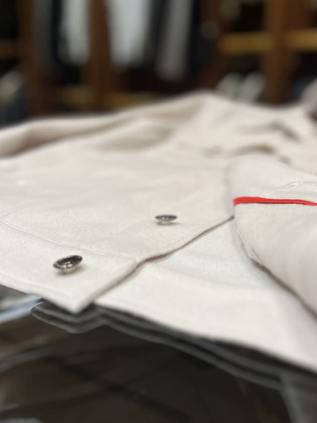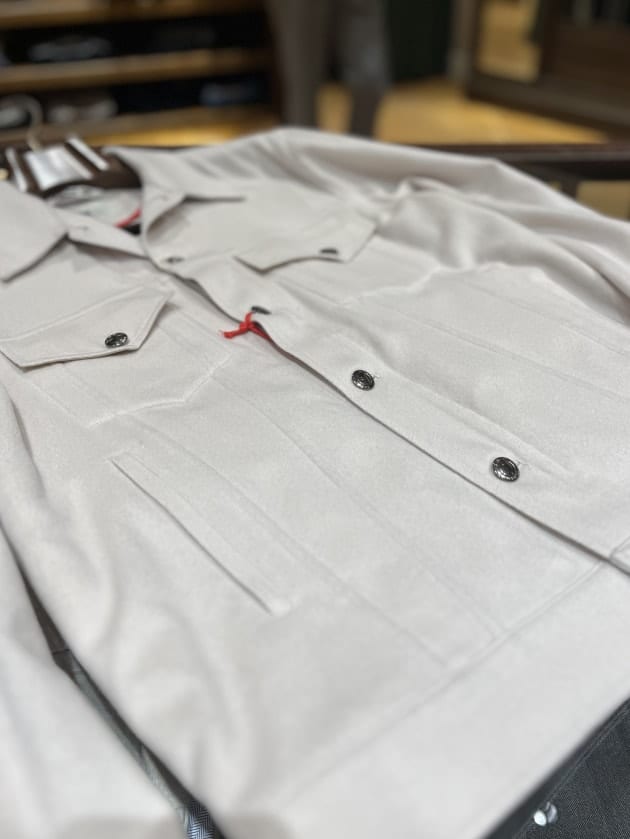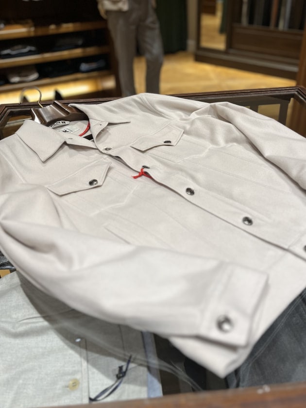 本来、粗野な位置付けのGジャンも、高級素を使用し高いクオリティの物作りをするブランドからリリースされるとここまでキャラクターと雰囲気が変わるのか、と驚きです。