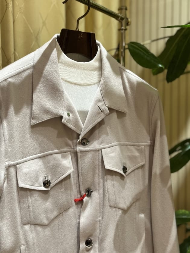 ここ最近支持を集めるピュアな色出し、そしてカシミヤの独特な艶感とのマッチングは最高ですね。