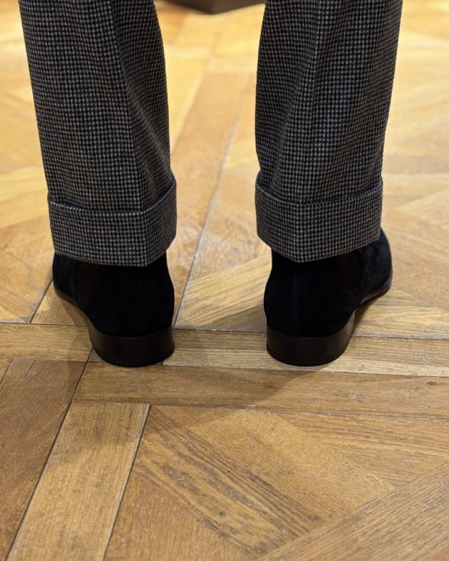 この日はスーツでしたが、スーツにも合わせられるエレガントさ。タートルネックなんかと合わせて、モダンに履いていきたいですね。