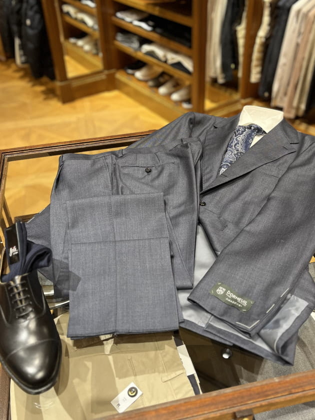 そんなラインナップの中、シーズンを跨いでも着用できそうなスーツをご用意しております。