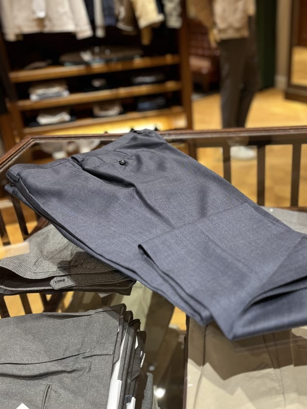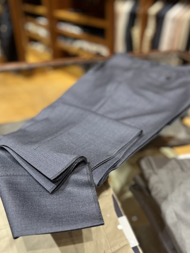 Super 100'S メリノウールで紡がれたこの生地は軽快さや美しさだけがセールスポイントではなく、仕立て映えもし比較的同ウエイトの生地よりも丈夫であることが挙げられます。