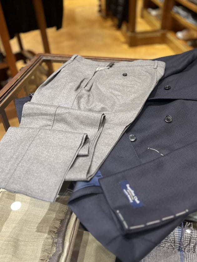 季節気温に応じて、毛足の長さ生地の厚みの異なるウールスラックスをお選びくださいませ。