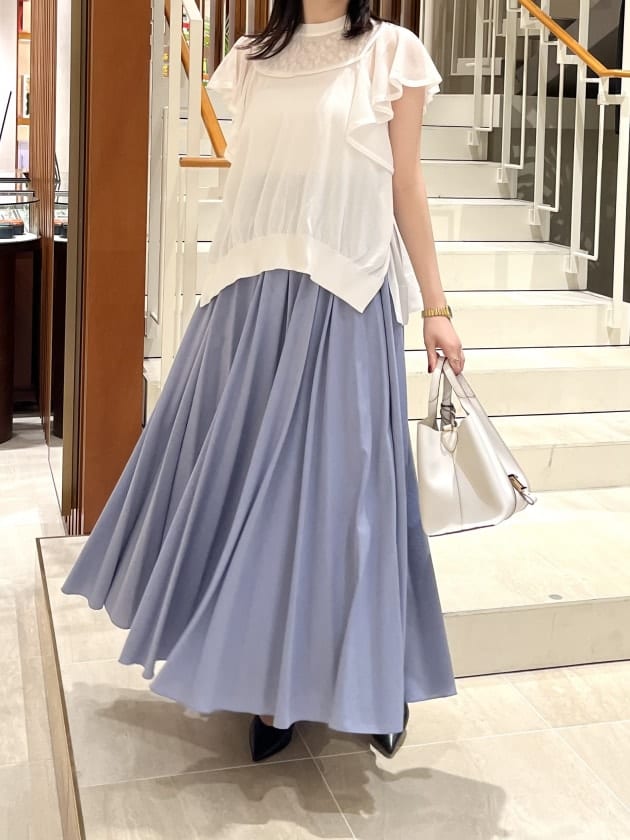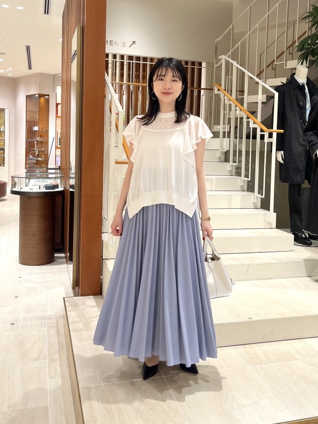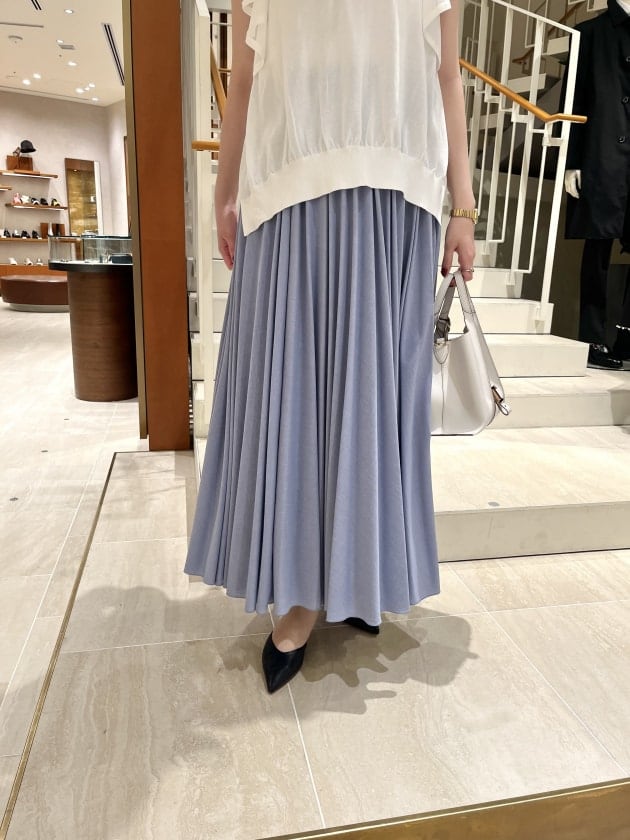 プリーツの折り目をしっかりと付けないことで、柔らかい印象に仕上がっています。
