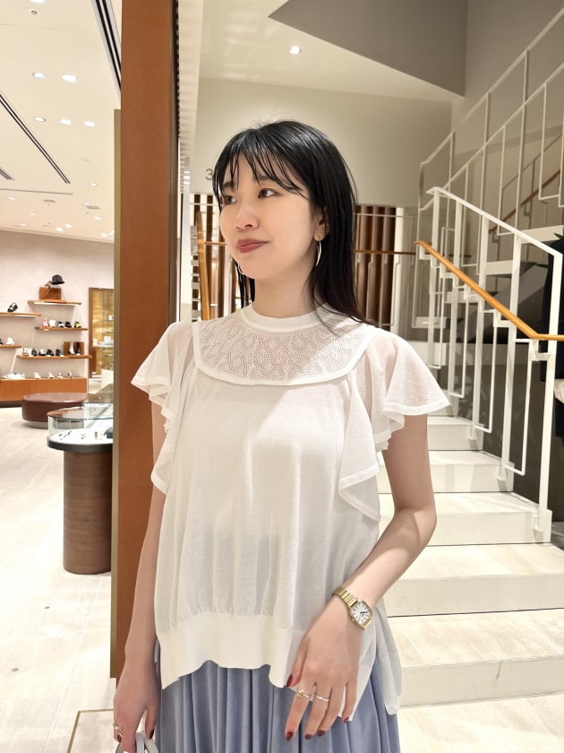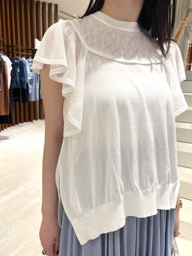 春夏では定番の繊細な編み地が美しいニット。