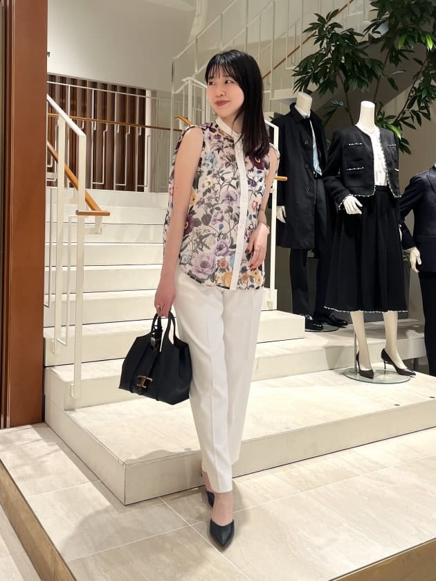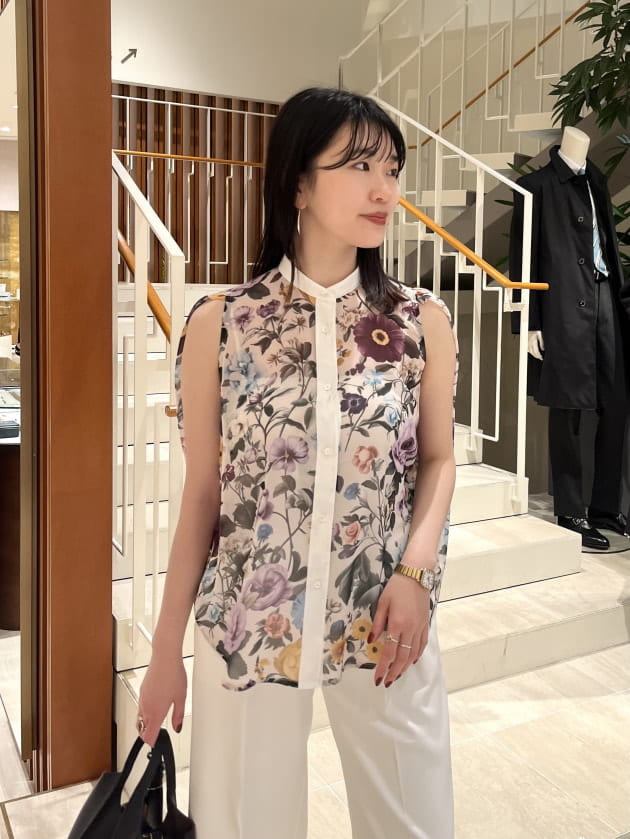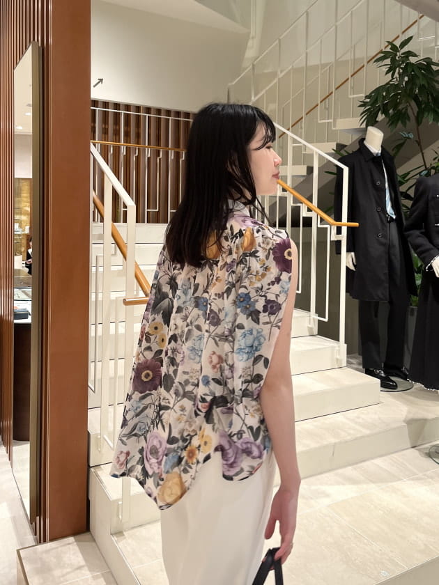 今シーズンブランド一押しのフラワープリントが華やかなブラウス。