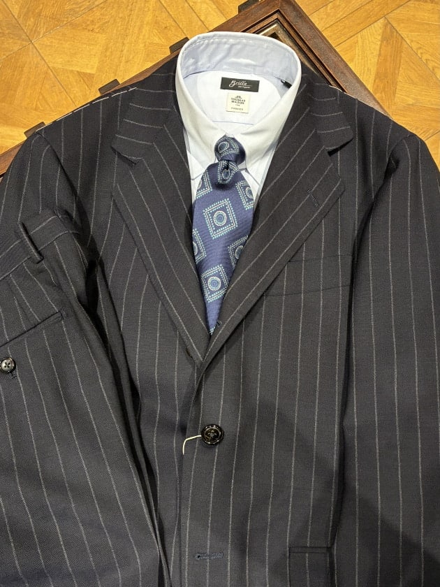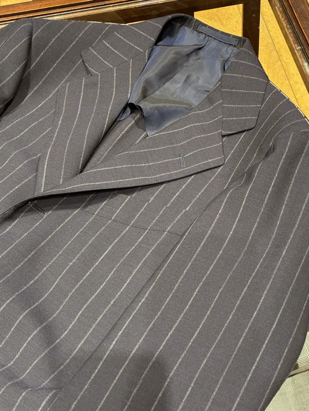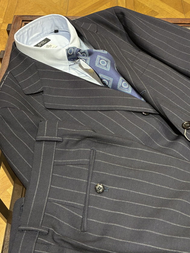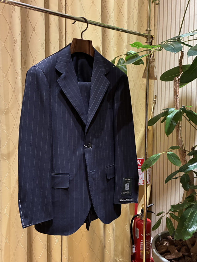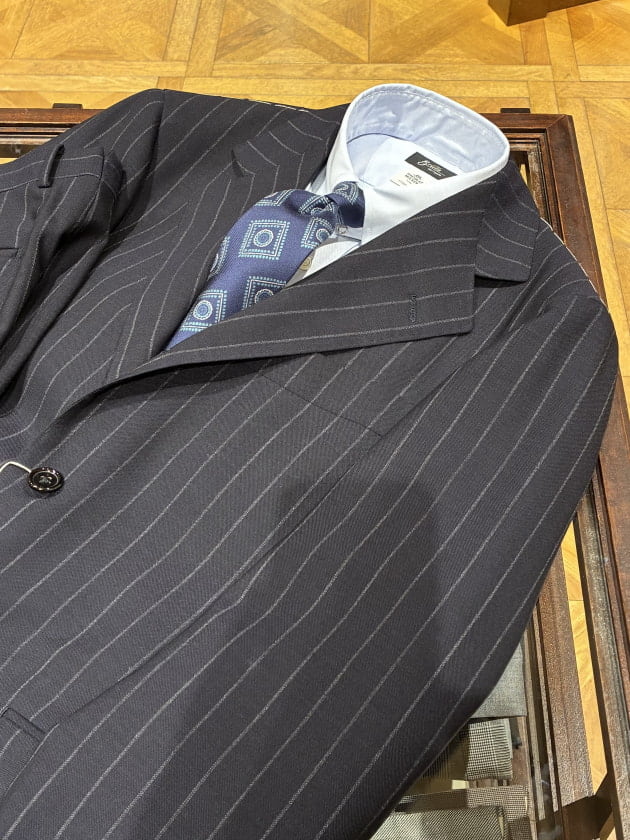 "フィレンツェ"モデルのNAVY チョークストライプスーツ。