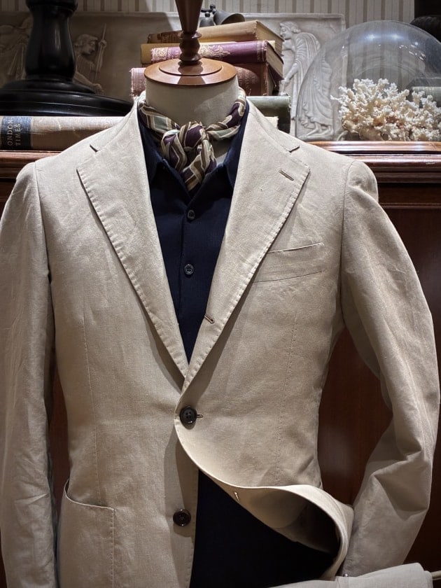 本日は<BEAMS F>イージーシリーズより春から夏にかけて映えるベージュのコットンリネンスーツをご紹介します。