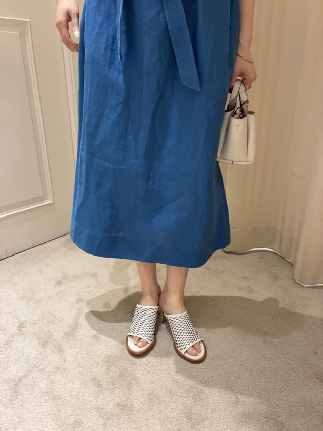 最後は three dotsの、こちらもサラリとしたテクスチャーのワンピース。