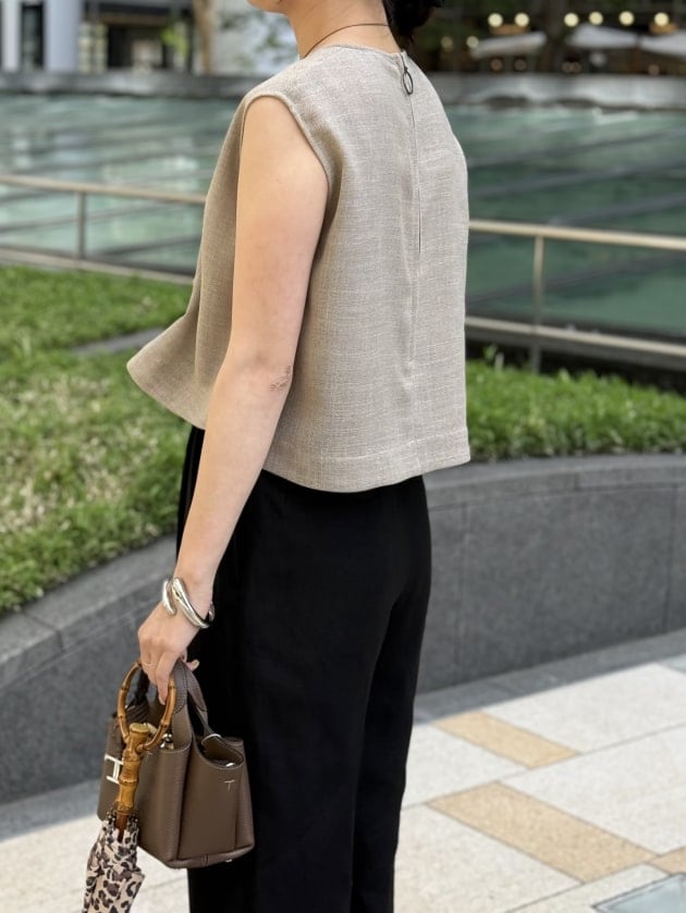 肩のラインを拾いすぎないシルエットは私と同じ骨格ナチュラルの方にオススメです。潔く腕を出すことで夏らしいヘルシーな印象を与えてくれます。
