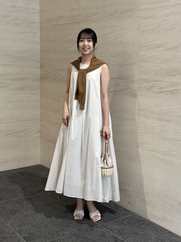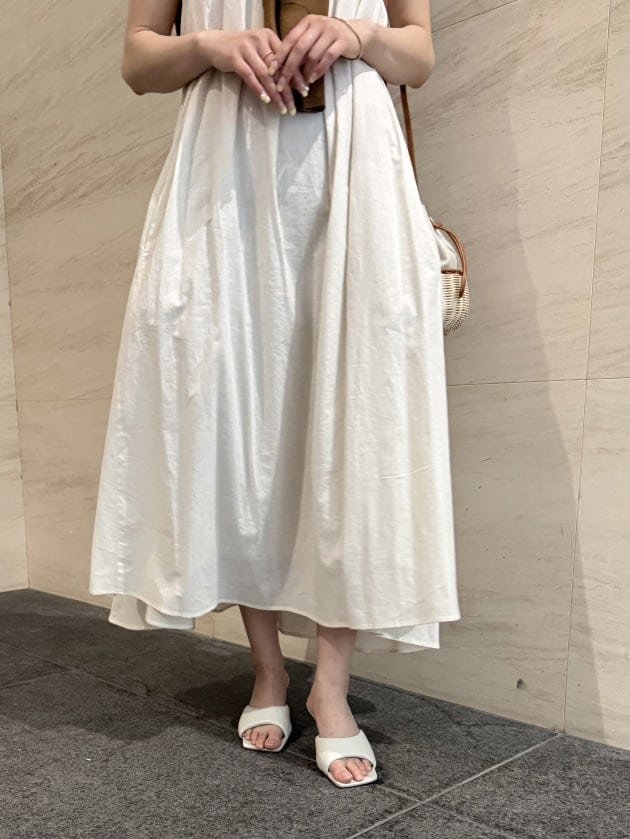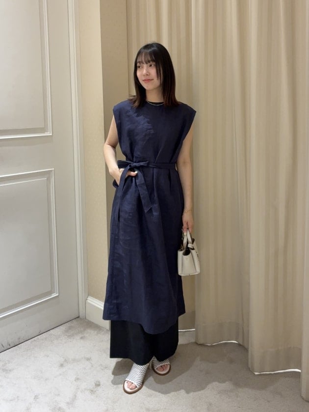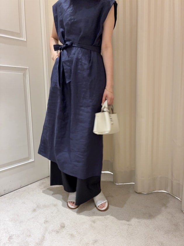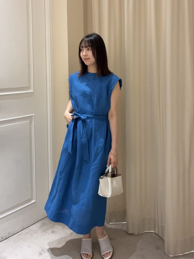 続いては一枚でサマになるM・filの名品、リネンノースリーブワンピース。