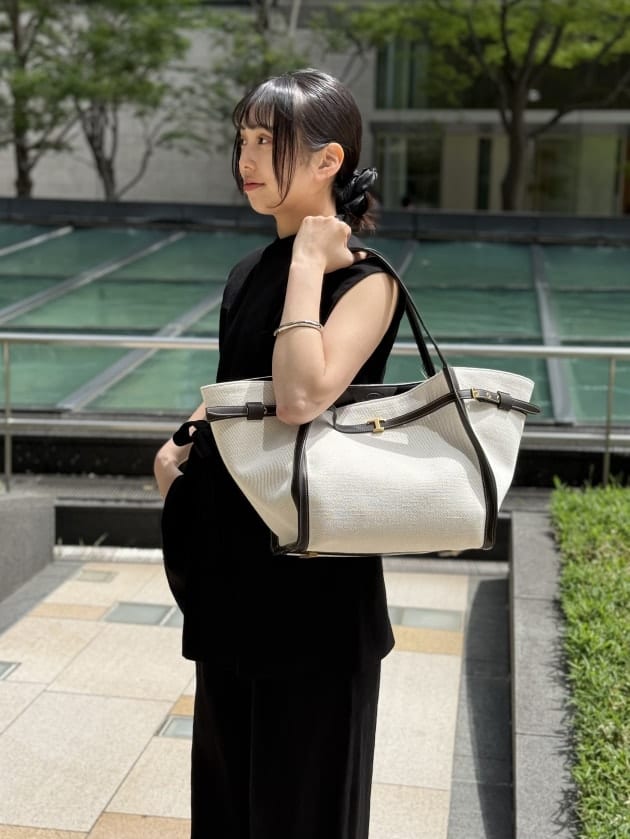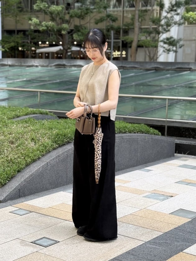 洗練された雰囲気を意識しながらも小物で遊びをきかせ、都内に馴染むスタイリングにしてみました。