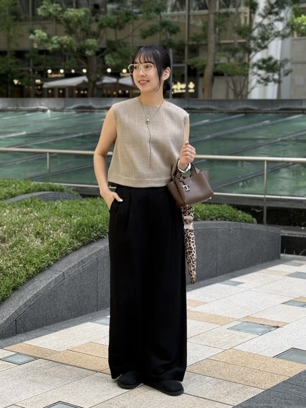 まずご紹介するのは毎シーズン大人気〈AK+1〉の新作アイテムです。ジレ、パンツともにAK+1を使用したスタイリングです♡