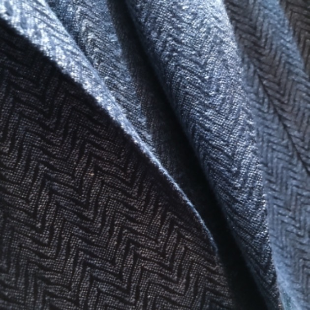 リネン100%のヘリンボーンは、杉綾の線が歪な形をした不思議な組織。