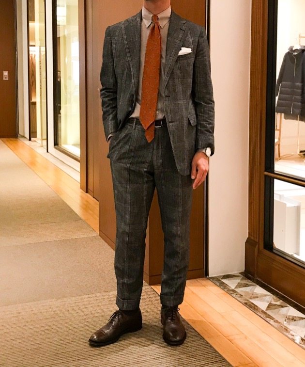 ざっくりとグレンチェックとは言っても、柄の大きさや色のトーン、ペーンの色との組み合わせでバリエーションは無限大。