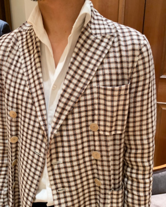 胸ポケットはパッチなので、むりやりチーフは挿しません。