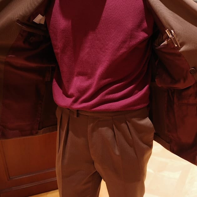 パンツは2インプリーツ、サイドアジャスター、ベルトループ無し。もう見慣れたディテールですね。