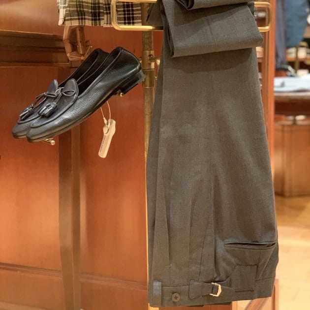 インナーの<JOHN SMEDLEY>のスキッパーは対象外ですが、ボトムスの<IGARASHI TROUSERS>、シューズの<LOASC>のリボンタッセルと、セールアイテムを中心のコーディネートとなっております。