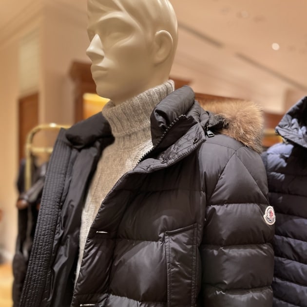 店内中央のマネキン2体をそれぞれ<MONCLER>でコーディネートしました。