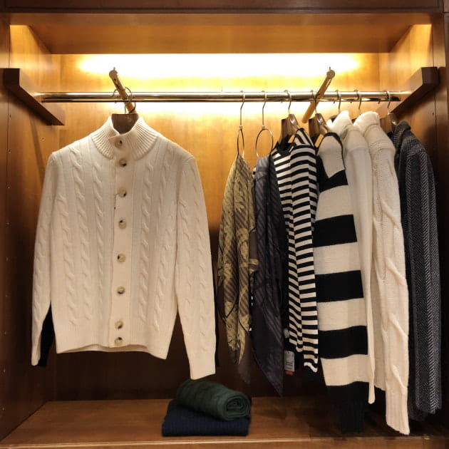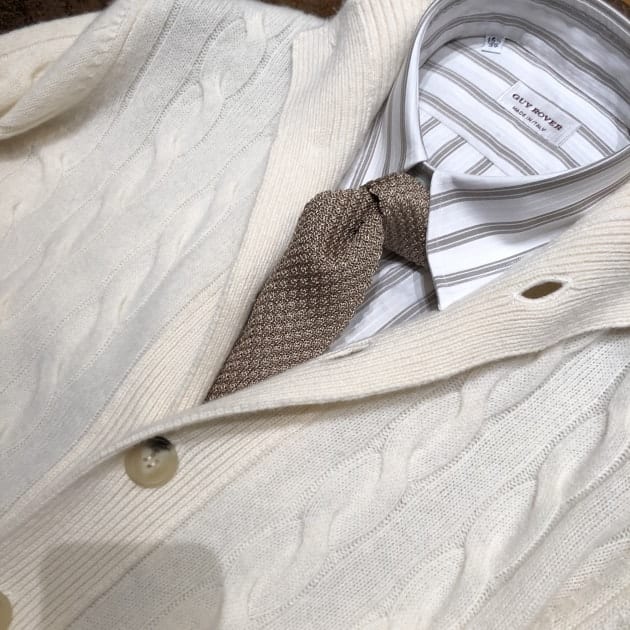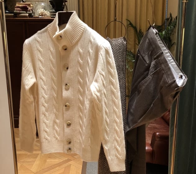 アメリカンやフレンチスタイルが流行ってますが、イタリアンなニット、リモート用にいかがでしょうか。