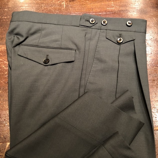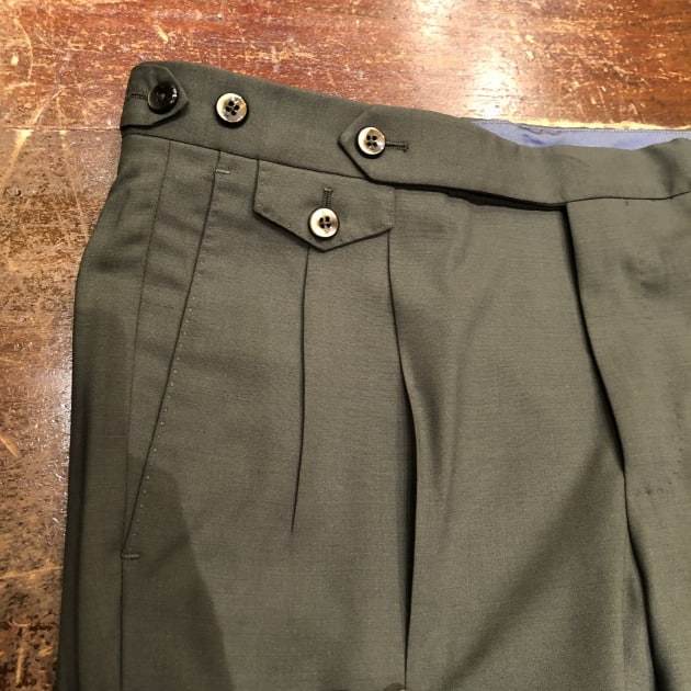 グリーンのウールパンツ。