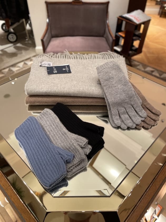 カシミヤは自社で紡績しており、有名メゾンへの生地供給も行っています。