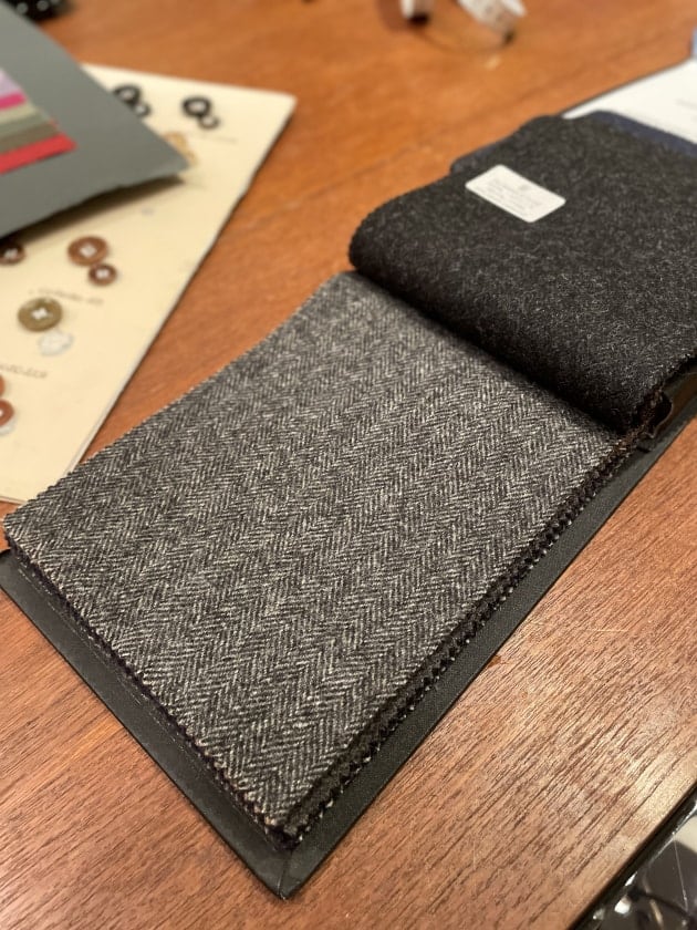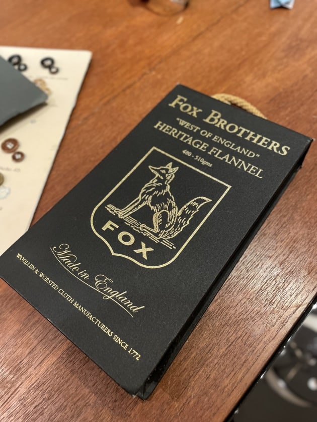 続いては今回初オーダーの佐藤。王道に〈FOX FLANNEL〉生地でグレーシングルスーツをオーダーしたそうですが、目付が約550gのかなりへヴィウェイトな生地を選んでいました。