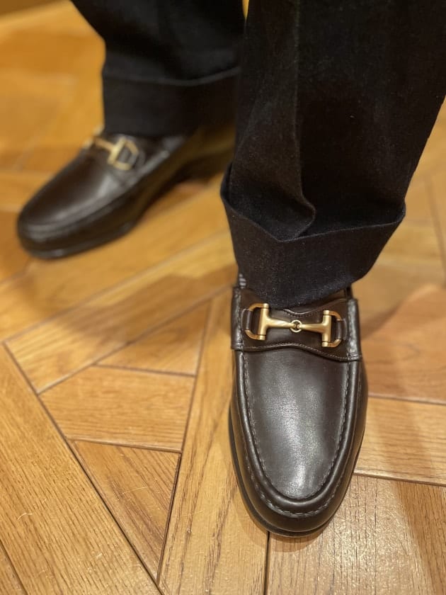 足元にビットローファーがN様らしい。ぐっと大人の香りがプラスされます。
