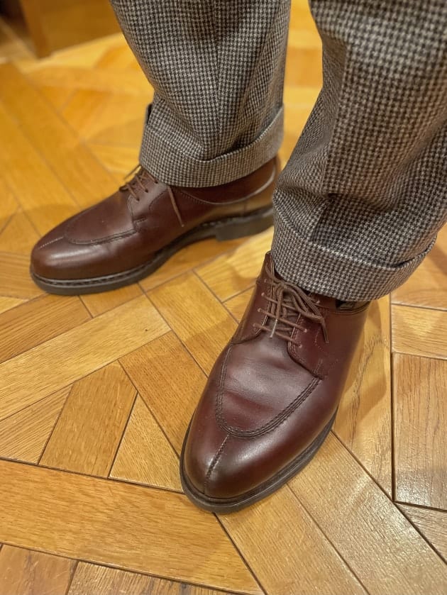足元は〈Paraboot(パラブーツ)〉のAVIGNON。