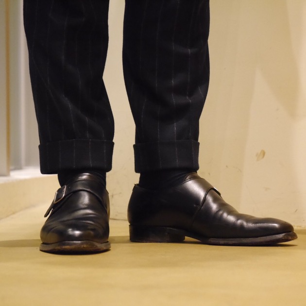 シューズはブラックのシングルモンクです。