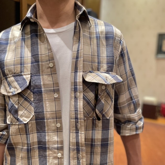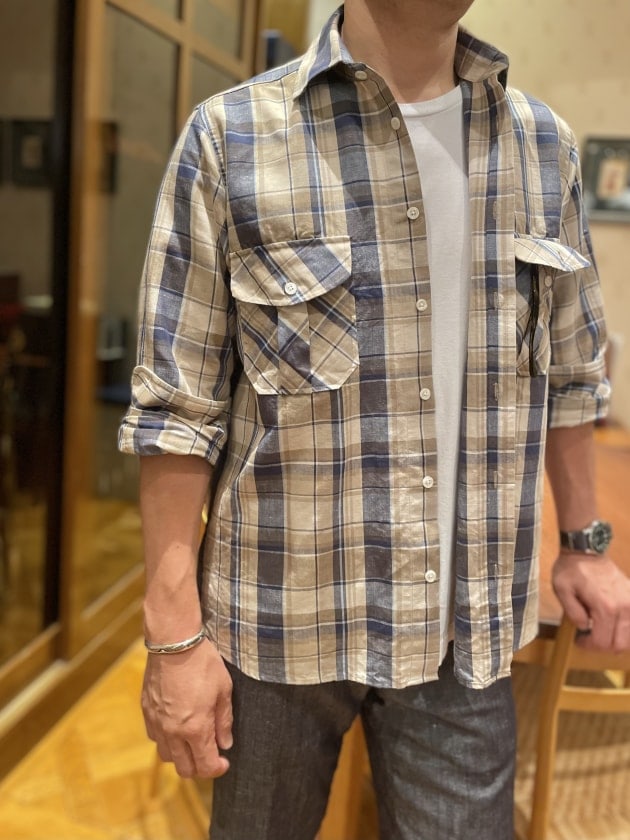 今シーズンお求めのコットンリネンのチェックシャツのインナーにはBEAMS PLUSの定番のTシャツ。