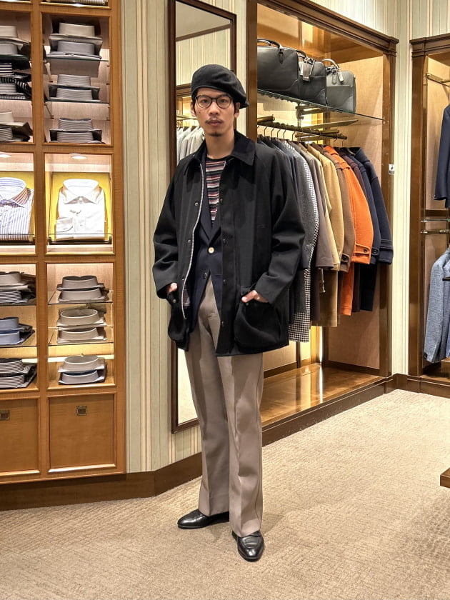 適度にゆとりのあるCLASSIC FITで、ウール素材で別注しております。