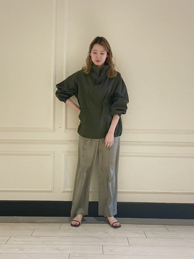 グリーンで合わせたコーデ。サテンパンツはヴィンテージ感もありこれから沢山着回しできる万能アイテムです♩