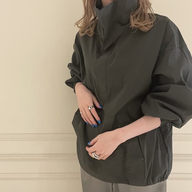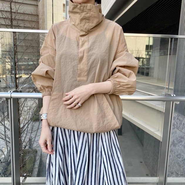 【細貝】「アノラックプルオーバーでカジュアル感が出過ぎないよう足元はヒールであわせたのがポイントです!」