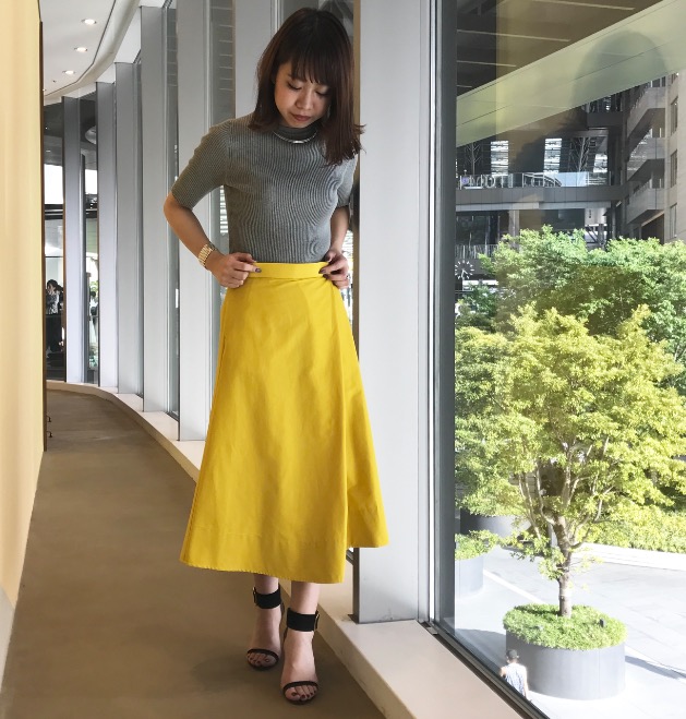 シンプルなデザインで、少し暗めなイエローのため、大人の女性でも挑戦しやすいカラーアイテムです。
