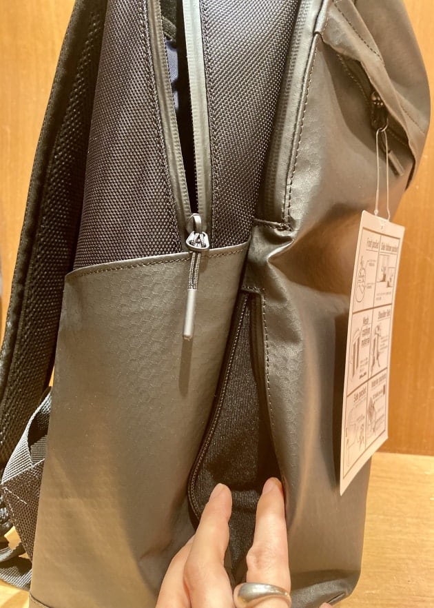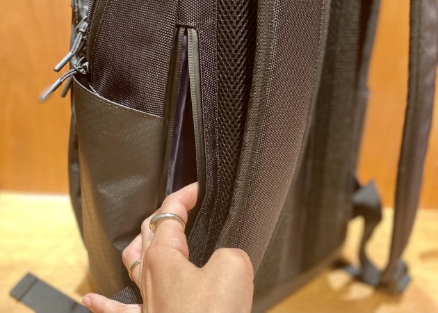 背負ったまま取り出し可能なサイドファスナーポケットや、折り畳み傘やペットボトルを収納できるサイドポケットまであります。