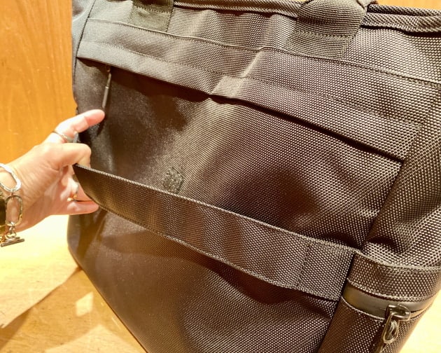 スーツケースのキャリーバーに固定も出来るので、出張などにも便利ですね。