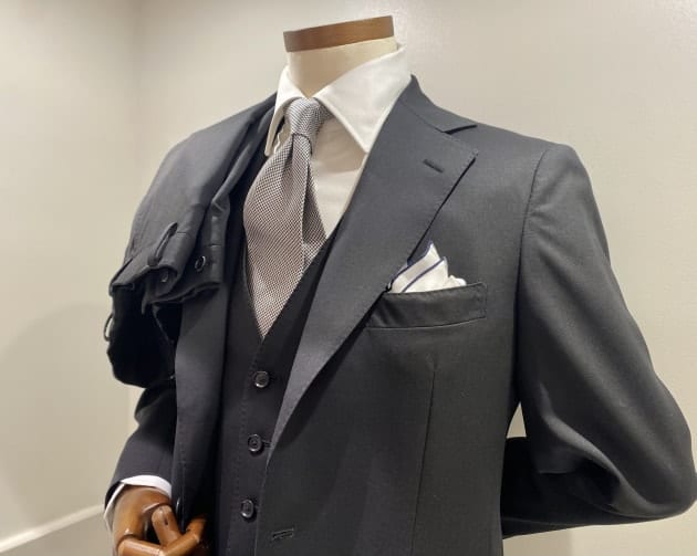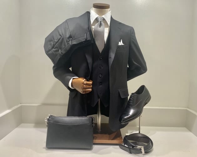そのため、お葬式の場では一般的なブラックスーツ(ビジネススーツなどに使われる一般的な黒い生地のスーツ)はダークスーツとして扱われるためNGです。