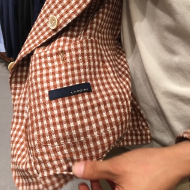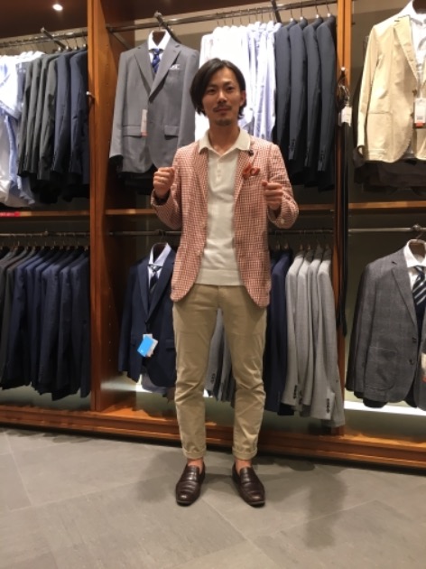 お直しがあがり、おろし立てのジャケットを着て顔から嬉しさが溢れ出ているのを隠しきれないのはスタッフオスミ。
