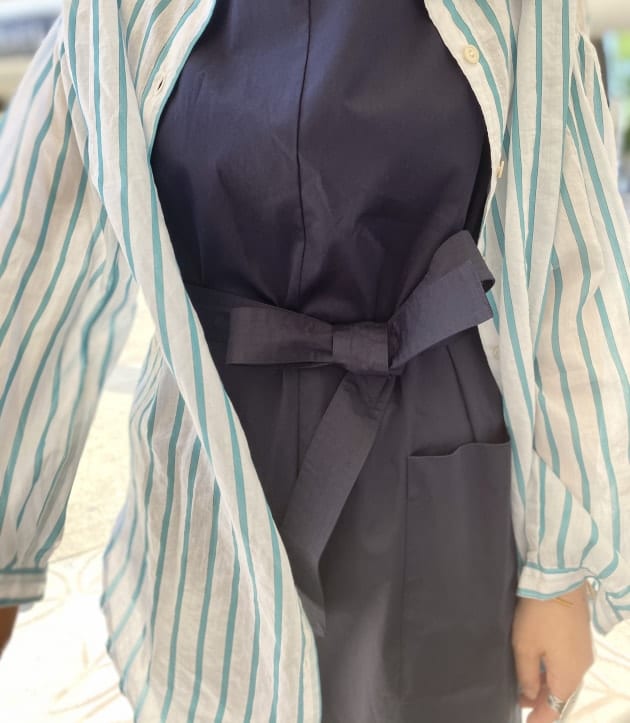 嬉しいことに、コットン生地でもやや光沢のある生地は大人の女性にふさわしいオーバーオールになっています。