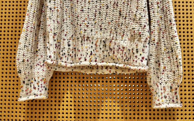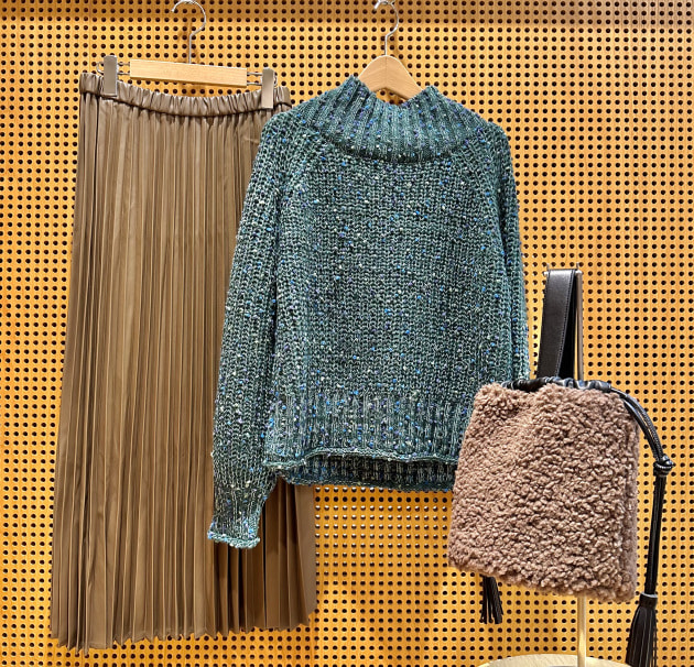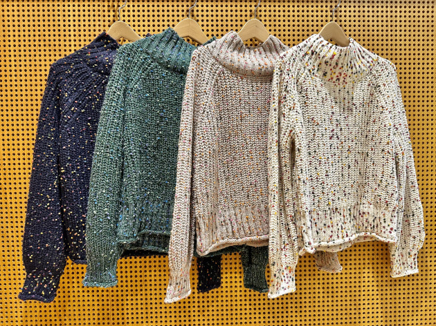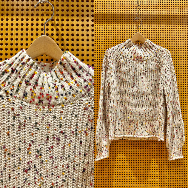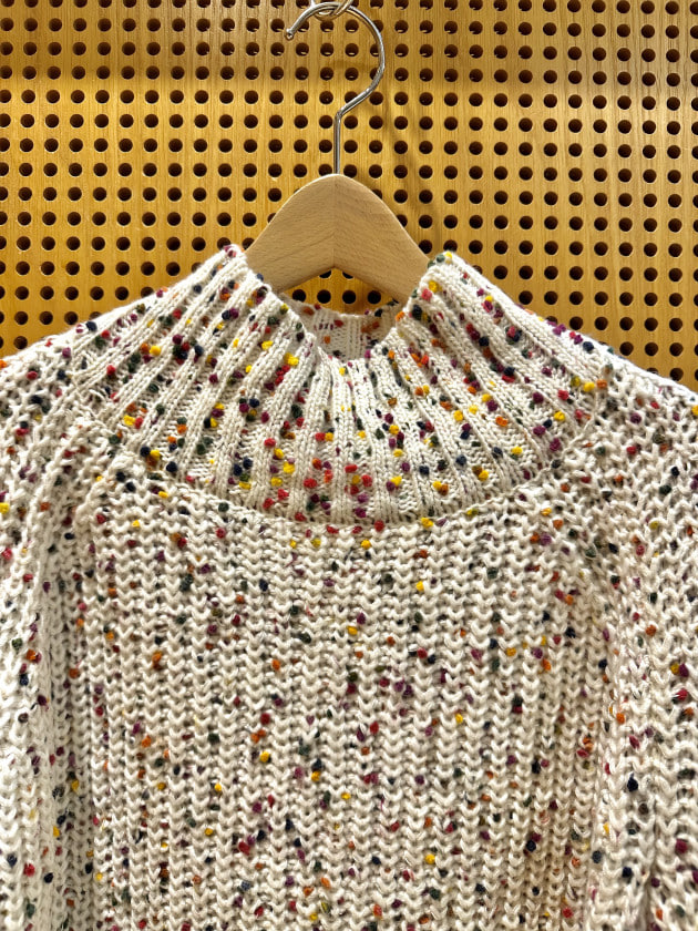 首元が高めに作られたネップの入っている粗めな編み目のニットでございます!