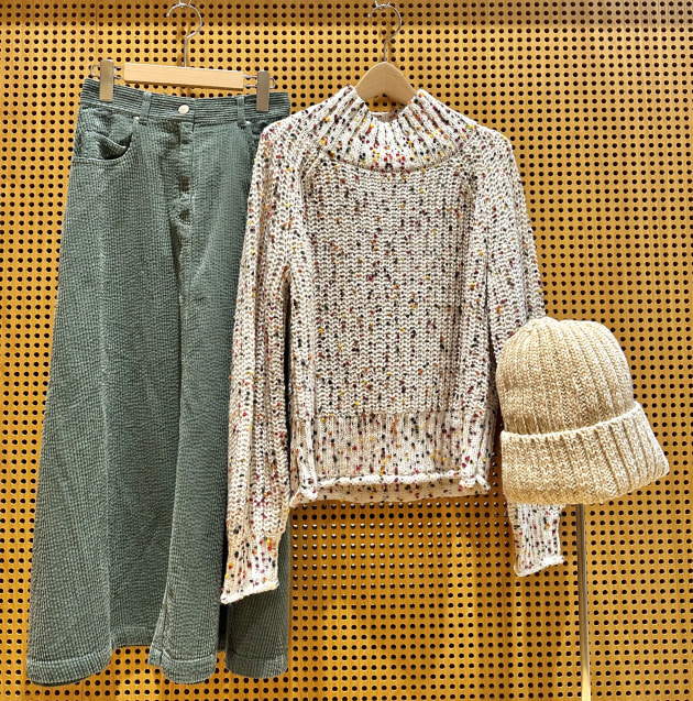 コーデュロイのスカートと合わせてカジュアルなテイストにもピッタリです!