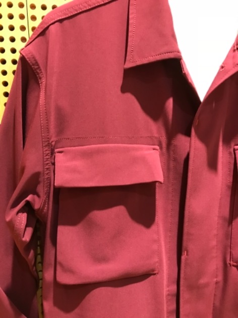 胸元には存在感のあるボックスポケット。サイズ感は大きめのシルエットで、パーカーの上から羽織れます。またビッグシルエットは今の気分にピッタリではないでしょうか?