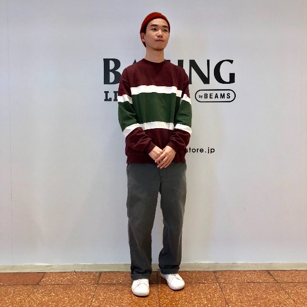 入社間もないスタッフではありますが、ビーミング by ビームス 一押しのヘビーウェイトロングスリーブをうまく着こなしています。