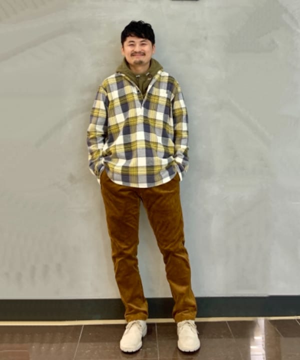 スタッフ石黒のようにシャツとのレイヤード、その他コートとの相性も良く、スタイリングが楽しくなるアイテムです。