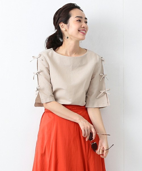 リボンでも甘くなりすぎない、スカートでもパンツでも合わせられる、そして5分袖。